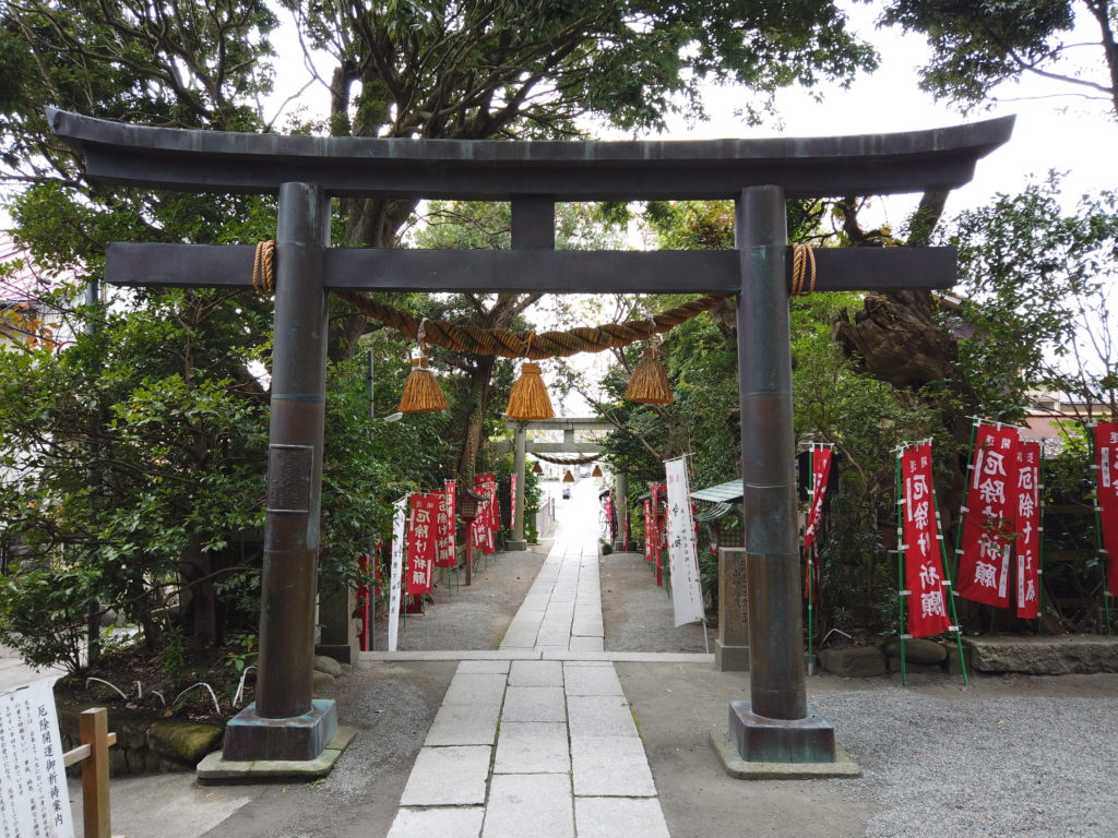 八雲神社の境内と清らかな雰囲気の参道。村社の雰囲気が残る境内。永保年間(1081年〜1083年)に創建された、鎌倉で一番古い厄除神社です。